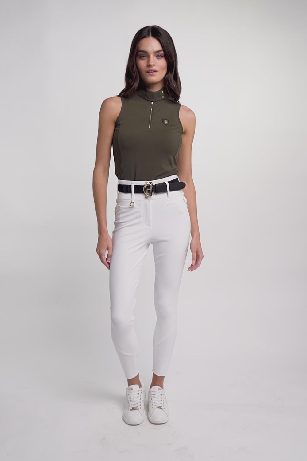 Perfect for wearing on those warmer days, this sleeveless base layer is an equestrian essential. Crafted from a comfort stretch fabric with mesh panels for breathability and ventilation, making it optimal for warmer weather. Featuring snapped collar for instant elegance and detailed with our signature gold hardware.